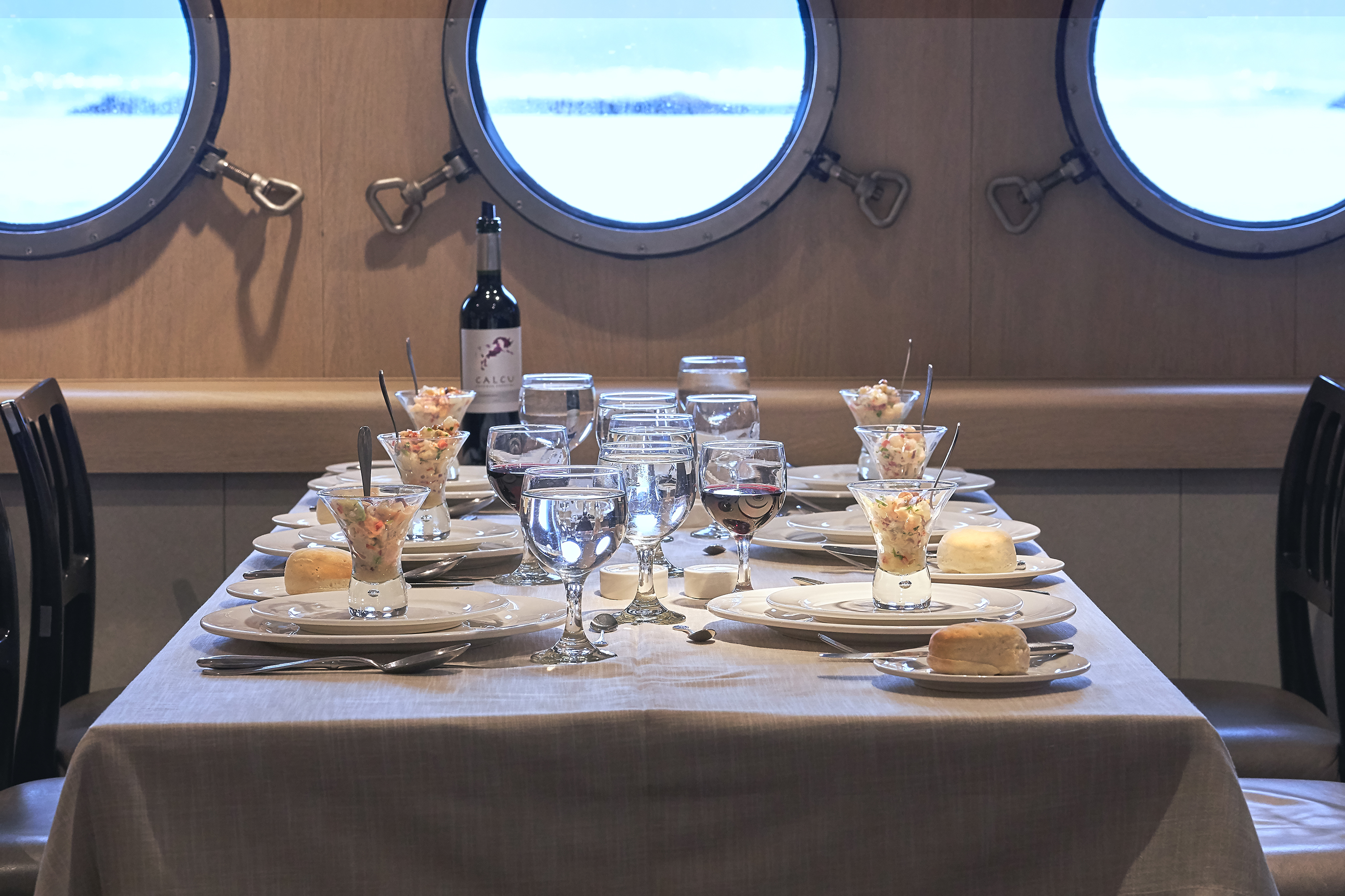 The galley also caters to special dietary∘ requests.The all-inclusive bar features a wide selection of liquors, excellent Chilean wines and local craft beers, as well as our trademark Calafate Sour.