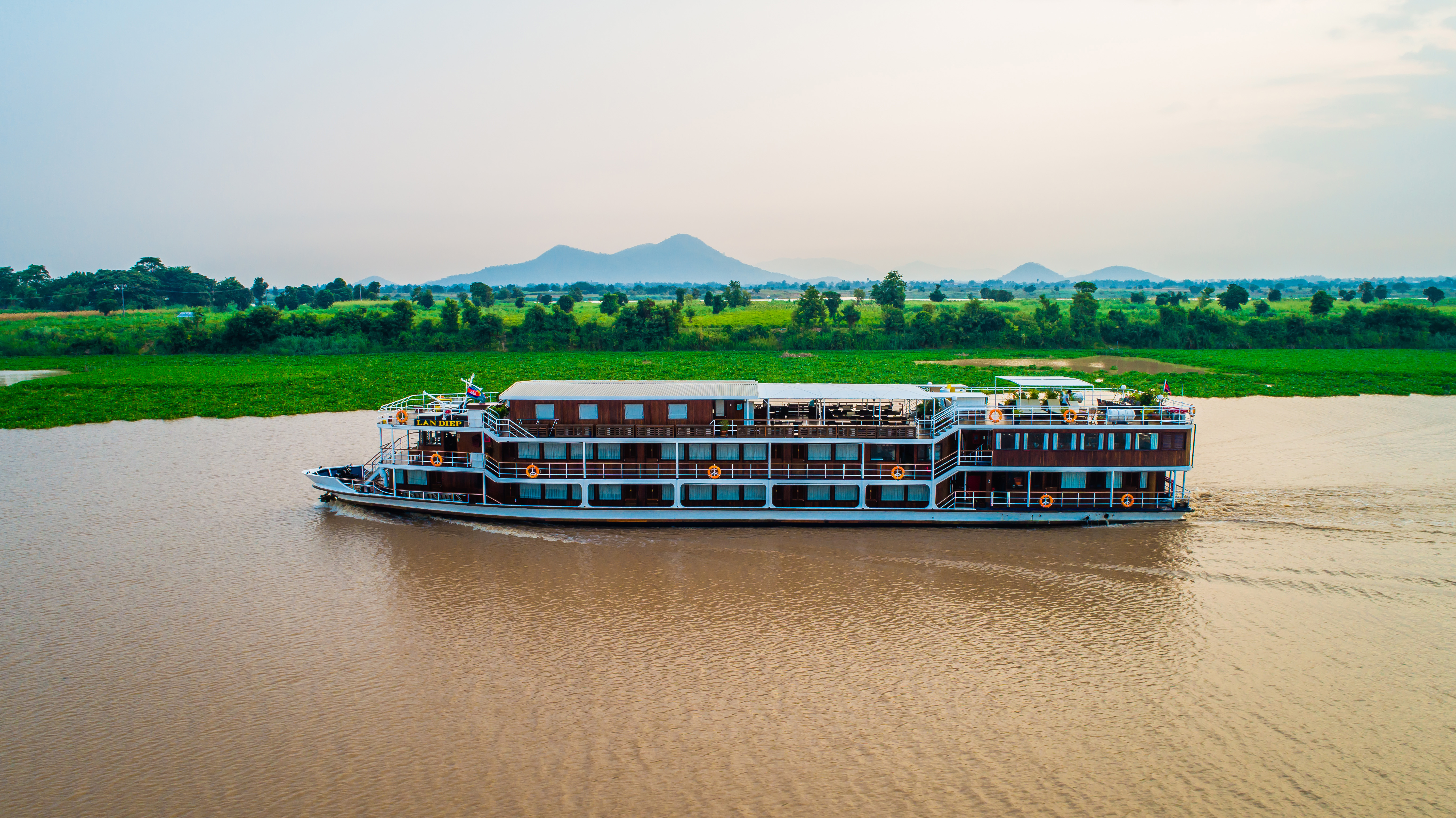 Spacious and comfortable cabin equipped with two beds (with optional twin-bed configuration), private bathroom with shower and bath products, safe, hairdryer. Located on the main deck with picture window, it offers a panoramic view of the landscapes.AmenitiesCabins are spacious and comfortable, with plenty of light (16 m²).Conveniences: All cabins are exterior-facing and equipped with two low beds that can be joined together, large storage space, private bathroom with shower, air-conditioning, safe, hairdryer, dresser. Toiletries are available for your use. Onboard Wi-Fi.Facilities / Services on board:Onboard shopLecturesLibrary with classic literatureWi-FiLaundry service (In Phnom Penh)